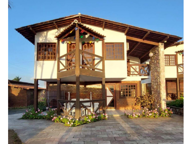 Obs.: A casa é composta por dois pavimentos: a) térreo, onde há varanda, sala, cozinha americana, um lavabo, área de serviço, um quarto de serviço e um banheiro de serviço; b) pavimento superior, onde há uma suíte com varanda, dois quartos com varanda e um banheiro. O condomínio possui as seguintes benfeitorias nas áreas comuns: um campo de futebol, uma piscina e um espaço com uma cozinha grande, três despensas, sala de televisão, banheiro masculino e feminino, varanda e churrasqueira. Também há no condomínio uma casa para funcionários. Ele encontra-se próximo à BR-232 e ao Privê Caraguatá, estando a aproximadamente 5 km do centro de Gravatá. Localiza-se em uma área predominantemente residencial, não havendo estabelecimentos comerciais nas proximidades.