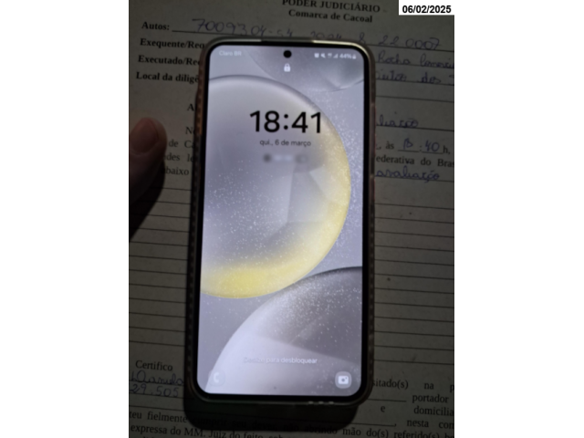 Aparelho celular, marca Samsung, modelo S24, capacidade de 256gb, seminovo, em funcionamento e em bom estado de conservação. (Proc. 7009304-54.2024.8.22.0007 - 2ª VC)