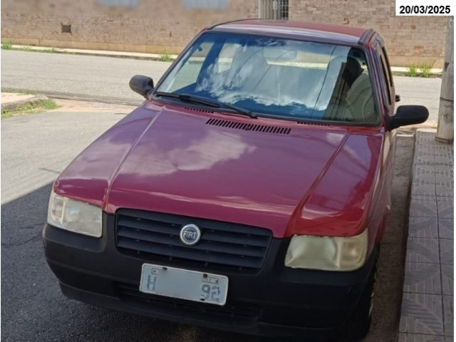 Fiat/Uno Mille Fire Flex, placa H**-**92, 2005/2006, cor vermelha, com alguns pontos amassados, pintura gasta e interior em bom estado de conservação. (Proc. 1358083-78.2008.8.13.0525)