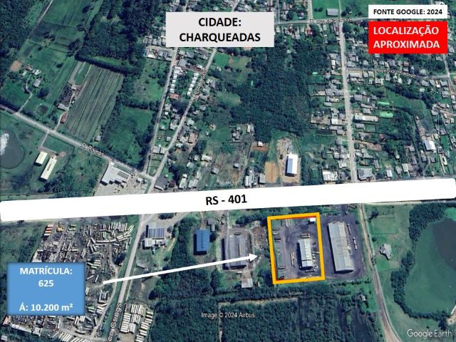 Terreno com 10.200m², área 02, lote 10, quadra 444, Rodovia 401, Lot. Distrito Industrial, Charqueadas/RS, CRI 625. (Proc. 5000777-67.2014.8.21.0156 - 2ªVC de Charqueadas)