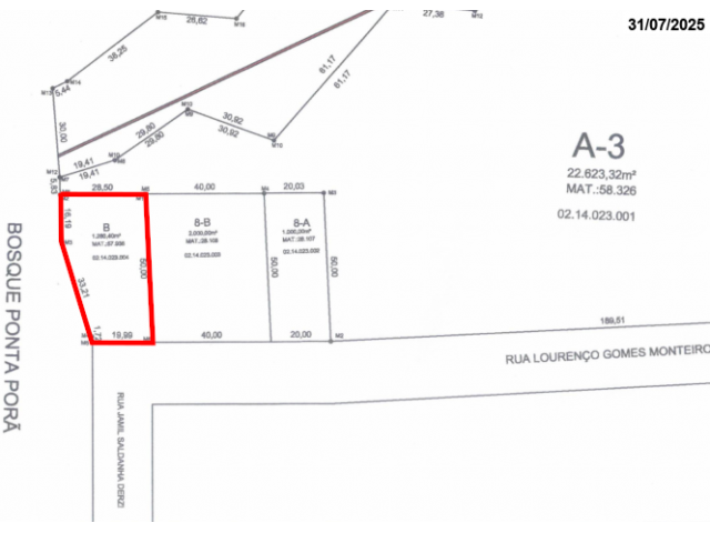 Imóvel c/ 0.1280 ha (doze ares e oitenta centiares), Lote “B”, Ponta Porã/MS, sem benfeitorias. Inscrição imobiliária Municipal sob n° 0214023004. Imóvel matriculado sob o n° 57.936 do Cartório de Registro de Imóveis de Ponta Porã/MS.