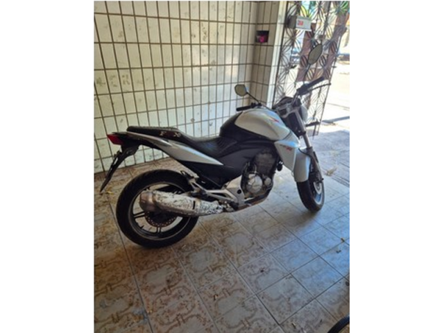 Honda/CB 300 R, placa O**-**18, cor branca, 2014/2014, a bateria encontra-se descarregada, não foi apresentado o documento do veículo. (Proc. 0000233-32.2023.5.07.0014)