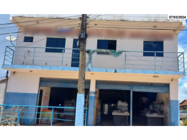 Benfeitorias: Área construída de 330,00m², imóvel utilizado como ponto comercial, atualmente funciona um supermercado denominado RS-Aquino. O imóvel tem uma boa estrutura, edificado em um padrão simples; com dois repartimentos, cerâmica comum, forro PVC, paredes apresentam infiltrações e mofos nas laterais, instalações elétricas comuns, fachada sem tratamento especiais, pintura desgastada pela ação do tempo. Há no imóvel tanto na parte frontal quanto no fundo um segundo piso, sendo no primeiro 03 quartos e um banheiro, cobertura de laje e uma sacada, já no fundo há uma cozinha e depósito, também neste local o forro é laje, as portas e janelas material metalon. Imóvel construído em boa estrutura de concreto, porém, necessita de recuperação tanto nas partes internas quanto externa. O imóvel encontra-se localizado em bairro pouco valorizado, fora do setor central, contudo, possui rua pavimentada, energia elétrica, internet, rede de esgoto, há uma boa infraestrutura.