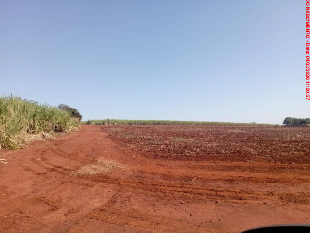 Benfeitorias: casa sede, água e luz. Área praticamente toda plantada em cana de açúcar, existindo apenas uma pequena área próximo a sede sem cultivo de cana de açúcar.