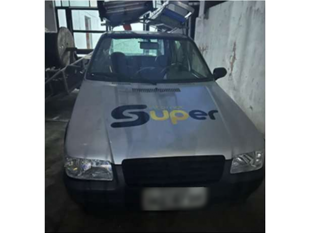 FIAT/UNO MILLE FIRE FLEX, 2008/2008, placa H**-**08, cor prata, álcool/gasolina, 4 portas, adesivado com logomarca da executada, apresentando pequenos arranhões e marcas na pintura, em bom estado geral de conservação e funcionamento. (Proc. 0010229-46.2022.5.03.0064)