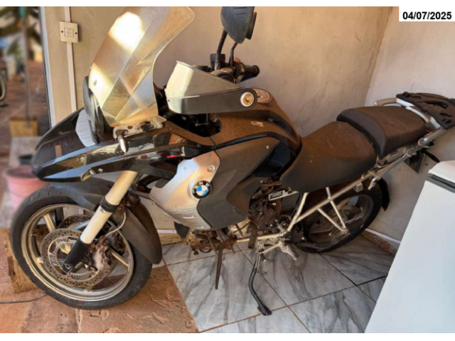 Motocicleta, marca BMW, modelo R1200 GS, ano de fabricação e modelo 2010/2011, placa N**-**47, cor preta, combustível gasolina, com partes essenciais do motor faltante e restante da motocicleta em razoável estado. (Proc. 0024115-60.2024.5.24.0096)