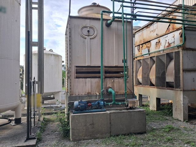 01 torre de resfriamento Kepler Weber Flex 49/900/9A, vazão 37,3m/h, pressão 1,4mca. Em funcionamento. Regular estado de conservação. (Proc. 5008228-18.2015.4.04.7205 - 13ª UAEF)