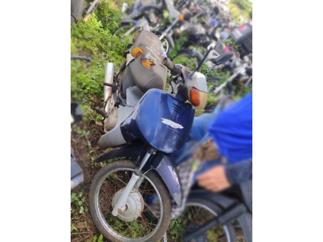 MOTO HONDA/C100 BIZ ES, Cor AZUL, Ano Fab./Mod. 2004/2004, Placa ALT6054, Chassi 9C2HA07104R043150, N° Motor HA07E14043150, Renavam 00827979584. SUCATA APROVEITÁVEL.