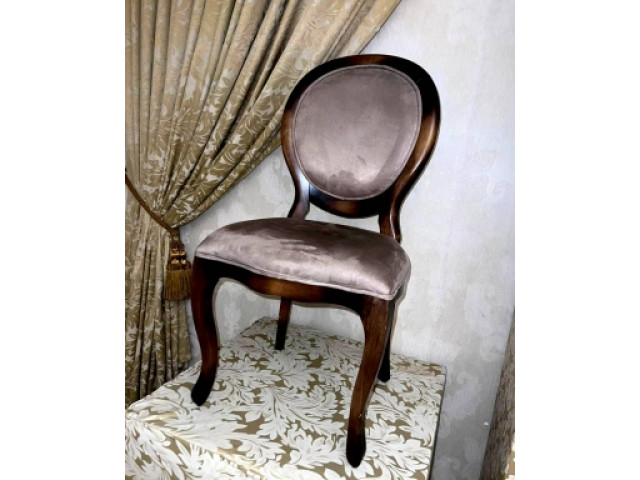 Cadeira Clássica Medalhão Adoriable – Freijó, Fabricante Kleiner, Tecido Veludo Nude. Com estofamento em veludo, produzida em madeira de reflorestamento, pintura laqueada. Dimensões: 92 cm de largura; 99 cm de altura; 50 cm de profundidade; 47 cm altura do assento. (Proc. 0005654-67.2024.8.05.0274)