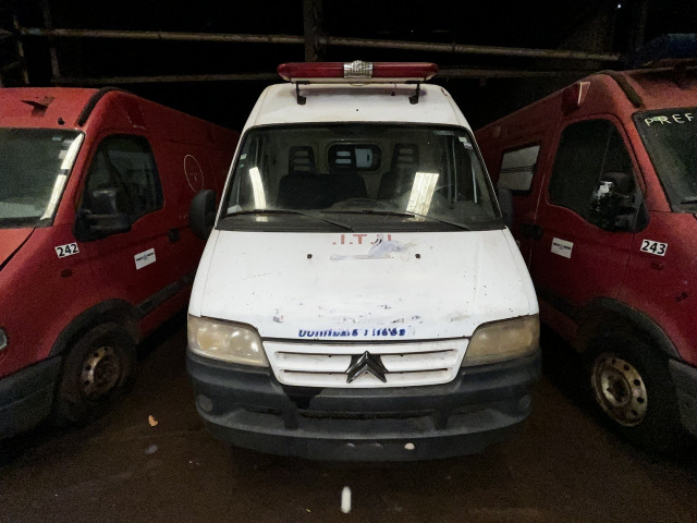 AMBULÂNCIA CITROEN/J GREENCAR AM10, Ano Fab./Mod. 2014, Cor BRANCA, Placa A**-**77. Estado de conservação RUIM. Possui Restrição: NÃO