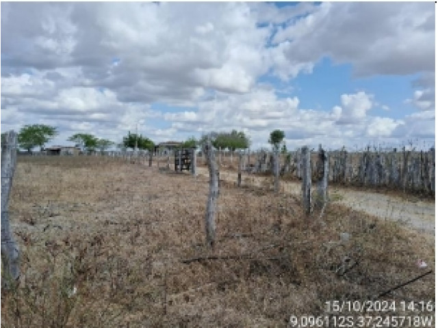 Benfeitorias: Energia elétrica de baixa tensão monofásica; Cobertura vegetal: pastagens cultivadas e vegetação nativa herbácea; Recursos hídricos: 01 barreiro de pequeno porte; Utilização econômica atual: pecuária (ovinocultura e bovinocultura) de subsistência. Possui edificado 01 casa-sede, padrão baixo, anexo a depósito e garagem, com área total de 160 m2, em estado de conservação regular; 01 cocheira simples, em alvenaria, com área de 60 m2, em estado de conservação regular; 01 barreiro com 50 horas-máquina, em estado de conservação regular; 2 km de cerca de arame farpado, com 04 fios, em estado de conservação regular; 10 ha de capim Buffel, em sequeiro, com aspecto vegetativo regular.